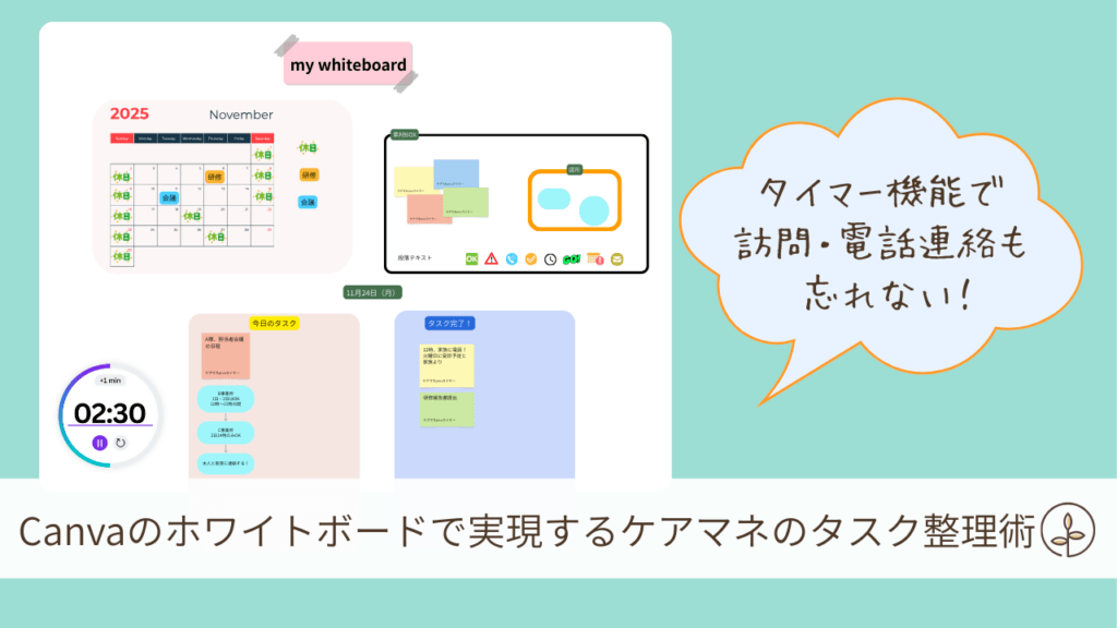 【付箋は卒業!】Canvaのホワイトボードで実現するケアマネのタスク整理術~タイマー機能で訪問・電話連絡も忘れない~