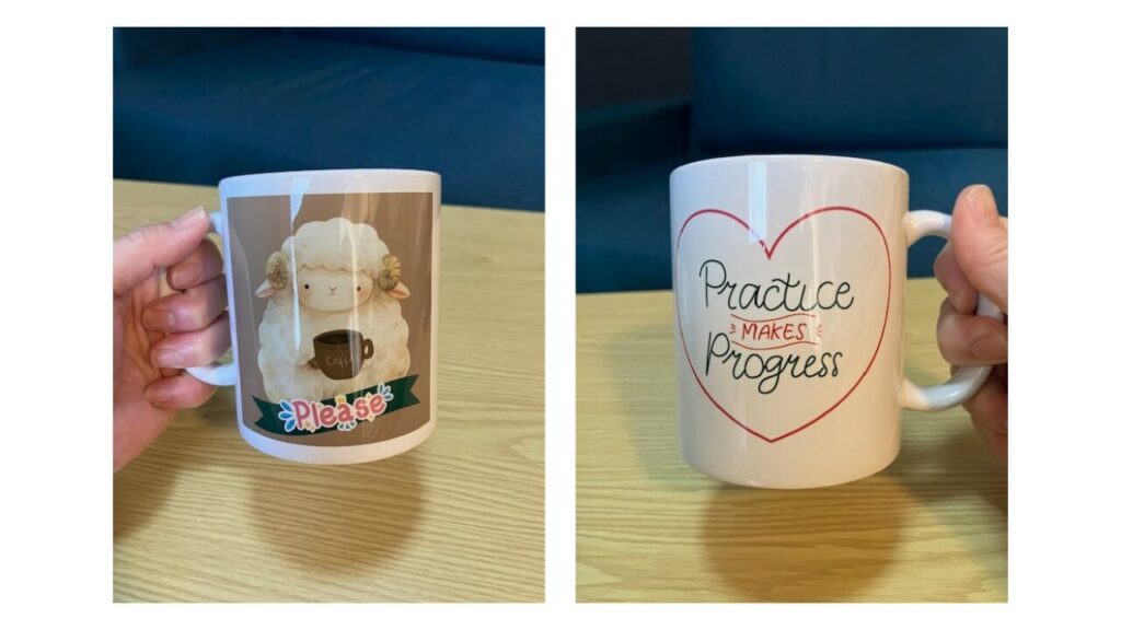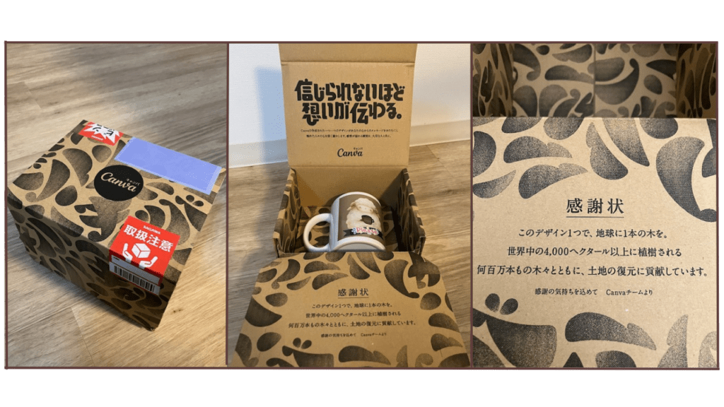届いたマグカップは品質も良く、Canvaのデザインをそのまま形にできるのも感動です。