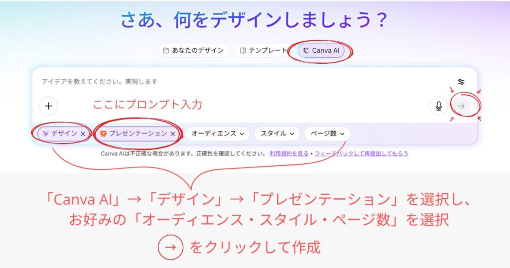 - Canva AIのプロンプトに研修のタイトルや概要を入力
