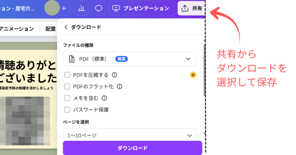 - 「共有」→「ダウンロード」で保存