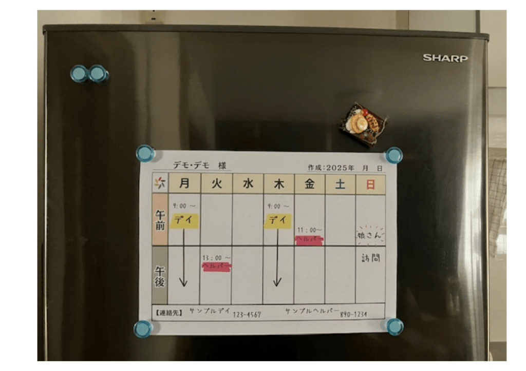 文字のサイズ、フォント、色付けなどを工夫して、「いつ、どこに行くのか、誰が来るのか」を明確にすることで、ご利用者の安心に繋がるのではないかと思います。