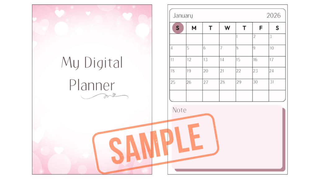 デジタルプランナーとデジタルノートはCanva、クリップアートはChatGPT×CanvaAIで制作しました。