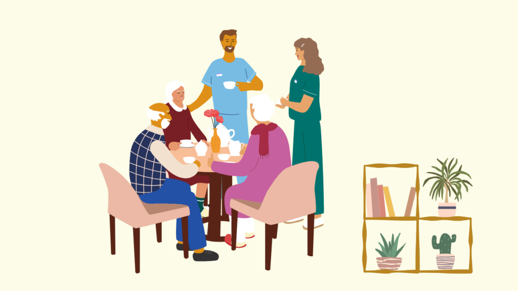 現在はユニット型個室の普及が進んでおり、「1ユニット=10人前後」で、家庭的な雰囲気の中で生活する形も増えています。